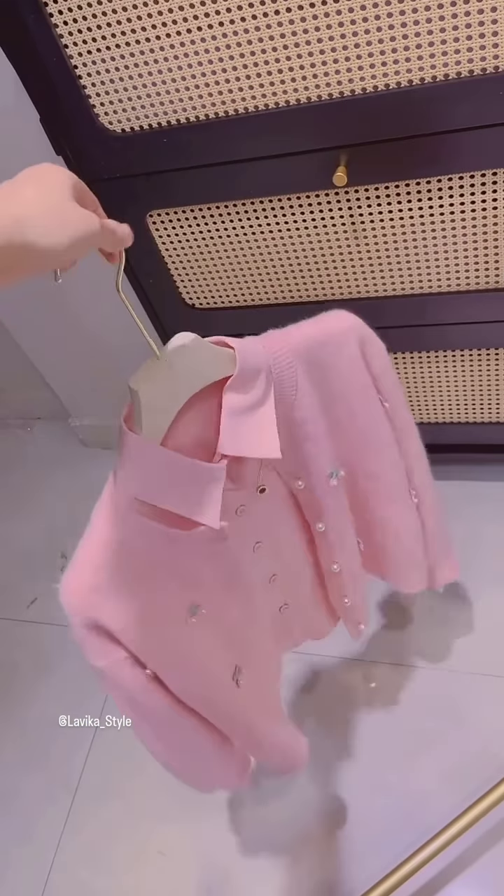 The entire ensemble is designed for effortless style. The cardigan’s length is perfect for layering, hitting at a flattering point on the waist. It can be worn buttoned up as a single top or left open to reveal the pearl-button detail of the inner top. The coordinated nature of the set means you can wear it together for an instantly put-together look. You can pair it with high-waisted trousers, a skirt, or tailored shorts for a polished outfit. For a more casual feel, style it with your favorite jeans. This set perfectly balances comfort with a high-end, designer feel, making it a valuable and versatile addition to your closet. It’s a true statement piece that showcases a love for unique details and timeless elegance.
